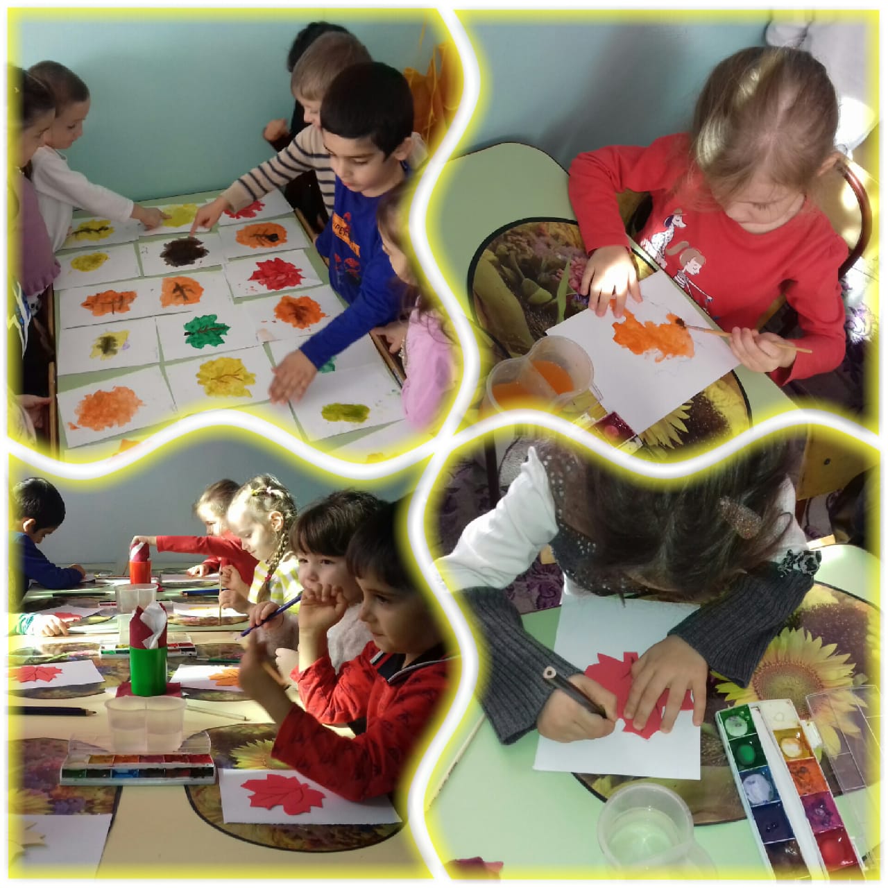 Рисование в средней группе "Чебурашка" на тему: "Осенний листопад"